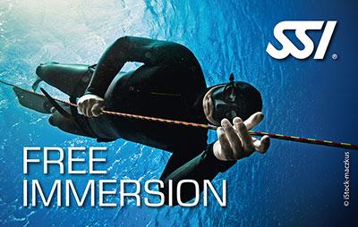 Free immersion freediving is a unique freediving discipline where the diver ascends and desce nds by pulling along a dive line, using only their arms during the dive. SSI Free Immersion freediving Course will help you develop the knowledge and skills needed to pull yourself into the deep blue with full confidence and total comfort. You will also master your equalisation skills and discover the joy of longer and more comfortable dives by learning your SSI Free Immersion freediving specialty course today.